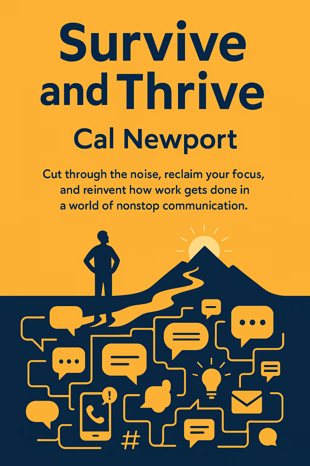 "text": "Cal Newport offers a unique perspective in 'Survive and Thrive', using real-world examples and practical tips to help readers apply the lessons."